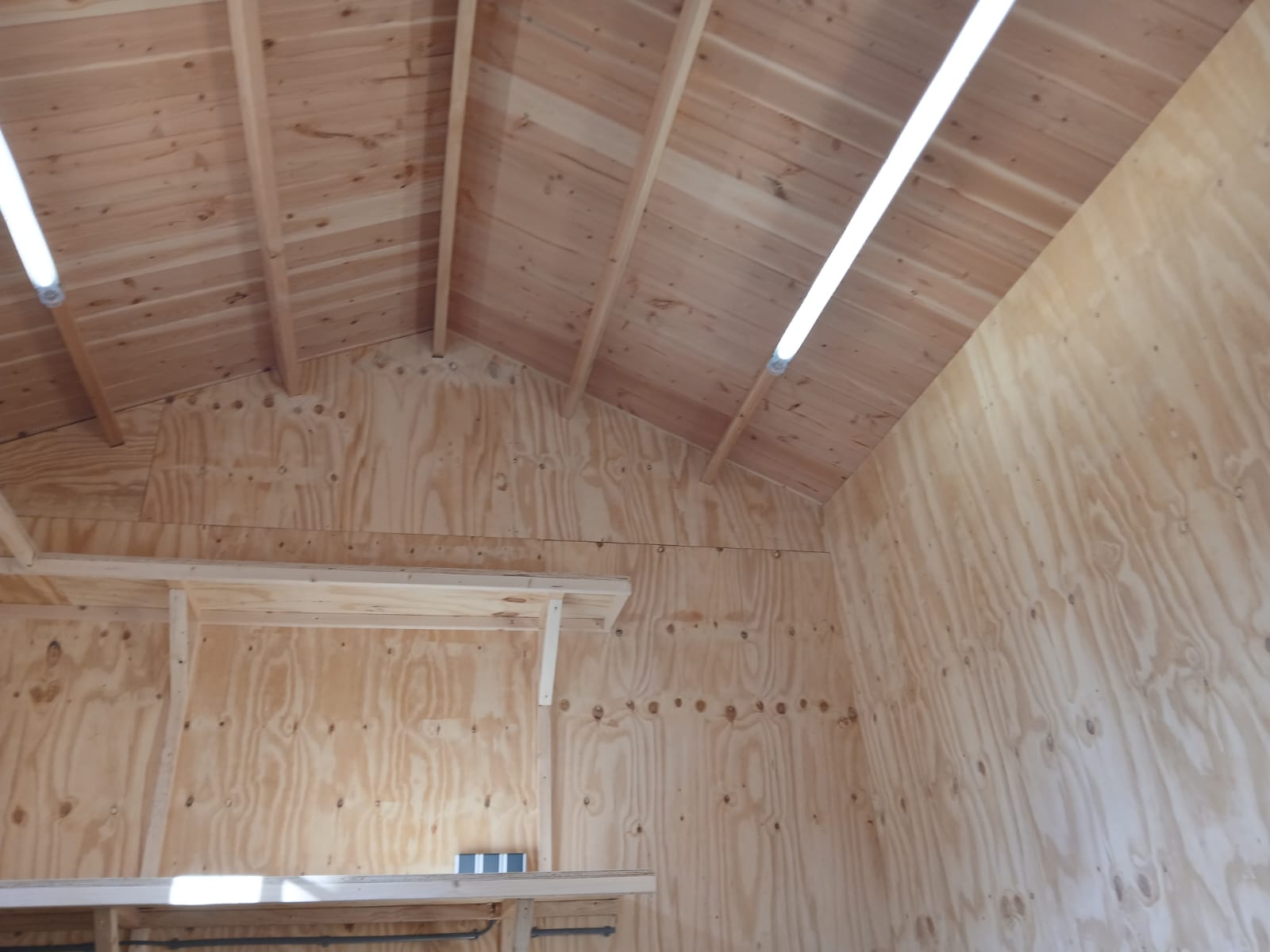 Binnen is gekozen voor plaatmateriaal voor een strakke afwerking, en door het plaatsen van isolatie in zowel wanden als dak blijft de ruimte prettig in gebruik, ongeacht het seizoen. Met de aangelegde elektra is de schuur bovendien direct geschikt als opslagruimte, werkplek of hobbyruimte.